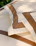 通常シーツは40~60番手の綿糸を使用されますが、こちらは、120番手を使用。ハイブランドやメゾンのドレスシャツに使用されるような紡績糸で仕上げるところは、高級ビスポークシーツブランドならでは。Mirabel Slabbinckの高い技術が生み出す、細番手で贅沢に織り上げられたシーツは、とても美しい光沢と、他では味わえないような洗練されたの肌触りを体感できます。