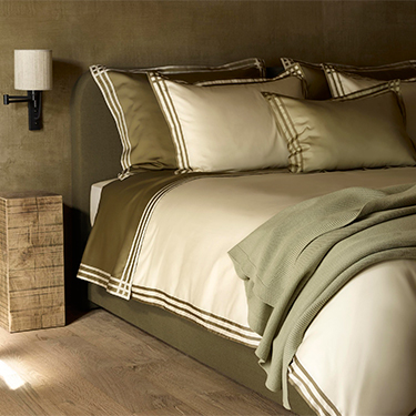 縁部分がヘリンボーン柄なっている、シンプルで品のある洗練されたデザインシーツ。